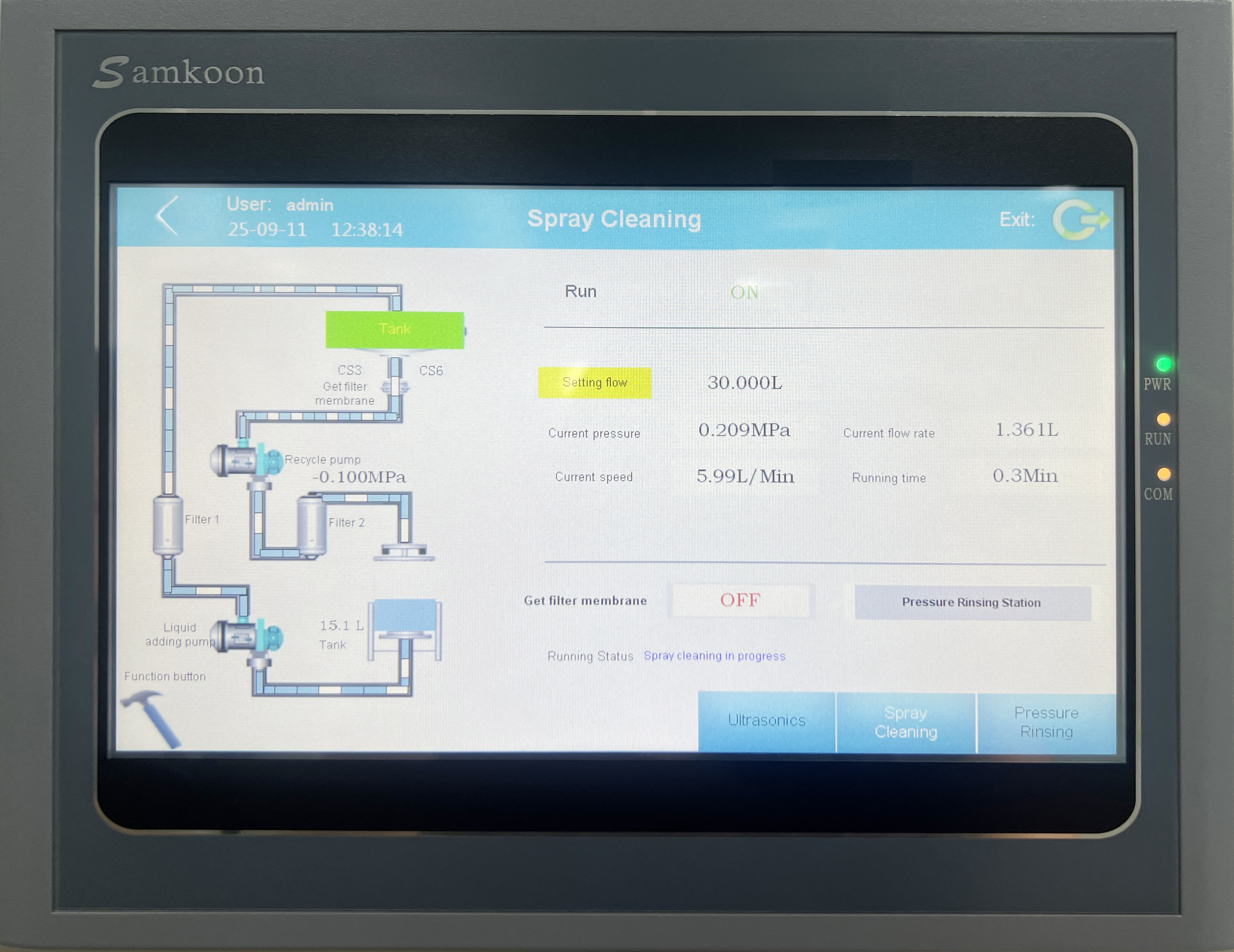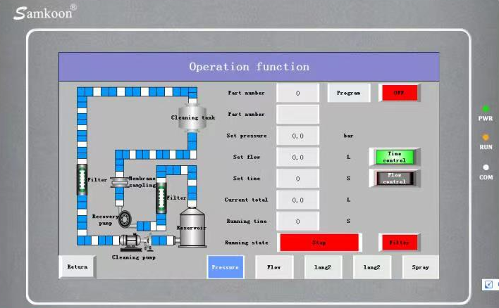 پارامترهای تمیز کردن مخزن شامل فشار تمیز کردن، پارامترهای جریان، تنظیمات سرعت جریان، زمان تمیز کردن و حالت تمیز کردن را میتوان مطابق با استانداردهای مختلف تشخیص تمیزی تنظیم کرد.